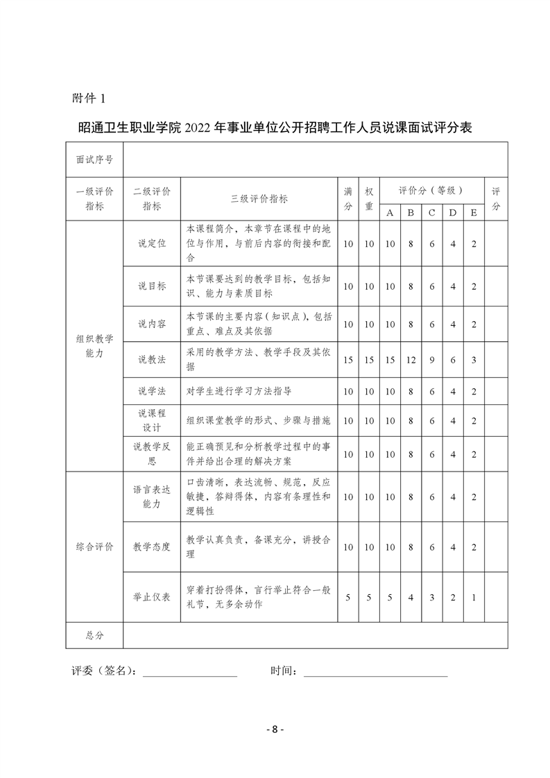 昭通卫生职业学院 2022年事业单位公开招聘工作人员面试公告