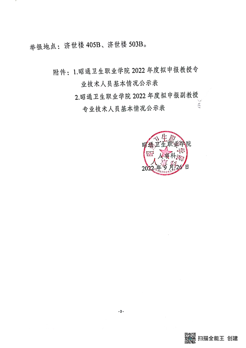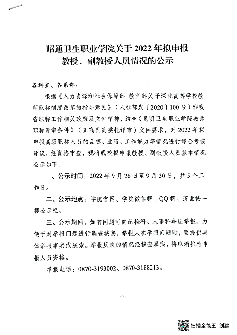 昭通卫生职业学院关于2022年拟申报教授、副教授人员情况的公示