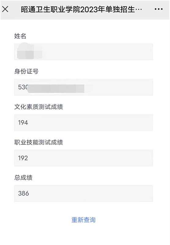 昭通卫生职业学院 2023年单独招生考试成绩查询指南
