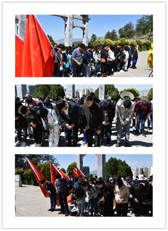 为缅怀革命先烈,继承发扬老一辈革命家的优良传统,开展革命信仰教育和传统美德教育,弘扬民族传统文化,2019年4月13日下午,昭通卫生职业学院七个在职党支部、学院妇联联谊,组织全体党员、预备党员和师生中的入党积极分子,到昭阳区凤凰山烈士陵园,开展了“扬先烈精神 颂爱国情怀”主题清明祭英烈活动,共同回顾历史、重温历史、了解革命烈士的英雄事迹。
