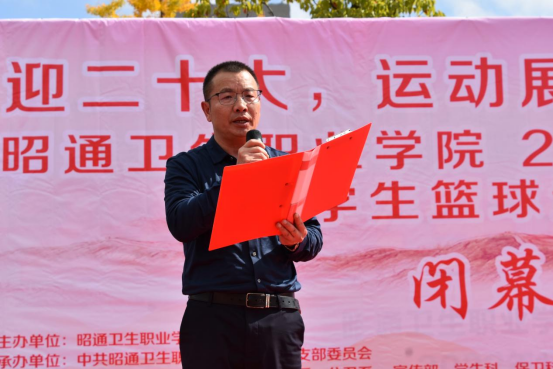 10月28日,历时一个多月的“喜迎二十大,运动展风采,一起向未来”昭通卫生职业学院2022年秋季学期学生篮球运动会圆满落幕。学院党委书记段毅出席闭幕式并致辞,党委委员、副院长兰玉琼,各相关部门负责人及全体裁判员、运动员参加闭幕式。
