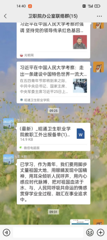 在中国共青团迎来成立100周年之际,在五四青年节即将到来之际,习近平总书记视察中国人民大学并同师生代表亲切座谈,对当代青年提出殷切期望和明确要求。作为党的助手和后备军,团委将认真领会习近平总书记重要讲话的丰富内涵和实践要求,不断增强为党做好青年工作的责任感使命感,学院团委将立足于昭通卫生职业学院自身特色,更加主动地融入高校“三全育人”的大思政工作格局,积极探索团的组织教育、实践教育与课堂思政教育相协同的有效路径,持续加强团学工作体系建设,抓实学生社团规范化管理,努力发挥独特作用。