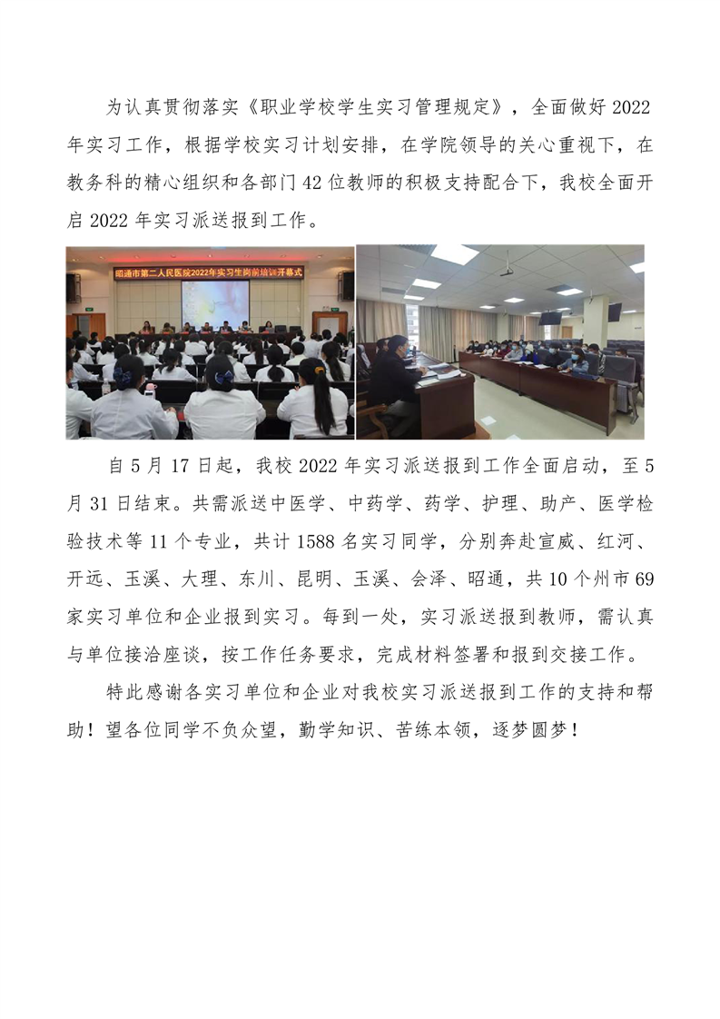 实习报到踏新征 学习活动入新程-昭通卫生职业学院开启2022年实习派送报到工作