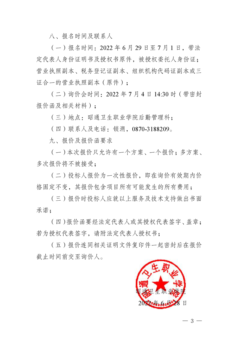 昭通卫生职业学院招生就业办关于印制2022 年招生简章和制作学生档案袋询价公告